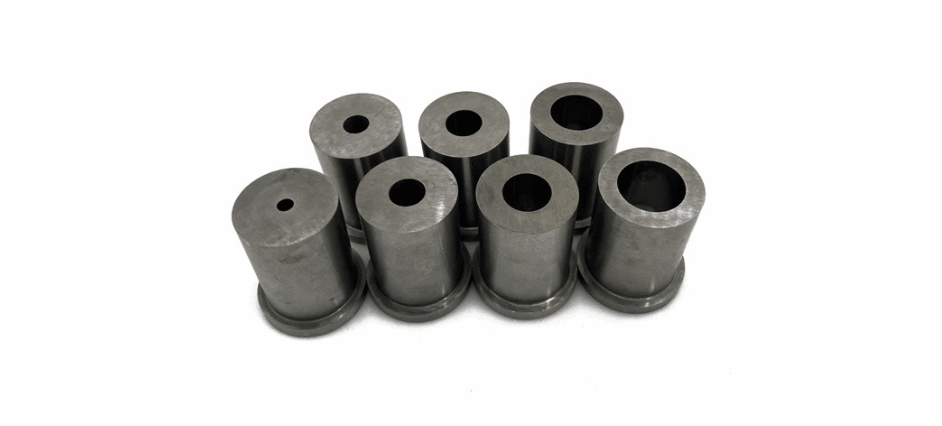 硬質合金工件還可以運用擠出模或打針模進行成型加工。擠出成型工藝更適合軸對稱形狀工件的大批量出產,而打針成型工藝一般用于雜亂形狀工件的大批量出產。在這兩種成型工藝中,不同商標硬質合金粉末懸浮在有機結合劑中,結合劑賦予硬質合金混合料像牙膏那樣的均勻一致性。然后,混合料或許經過一個孔被擠出成型,或許被注入一個模腔中成型。不同商標硬質合金粉料的特性決議了混合猜中粉末與結合劑的最佳份額,并對混合料經過擠出孔或注入模腔的流動性具有重要影響。